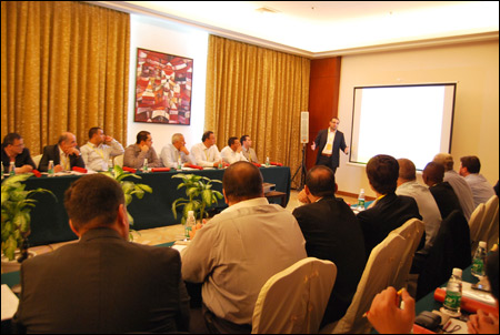 November 15-16, 2011, 2012 SDLG Annual Overseas Dealer Business Conference was held in Sanya city. Yu Mengsheng, Executive President of SDLG, Wen Degang, General Manager of SDLG, Zhi Kaiyin, General Engineer of SDLG, Wang Guochao, General Manager of SDLG Import & Export Company, Benoit Rimaz, President of Volvo Construction Equipment (China), Zhao Yong, Brand Director of Volvo Construction Equipment (China), and more than 30 excellent dealer representatives all over the world attended the conference.