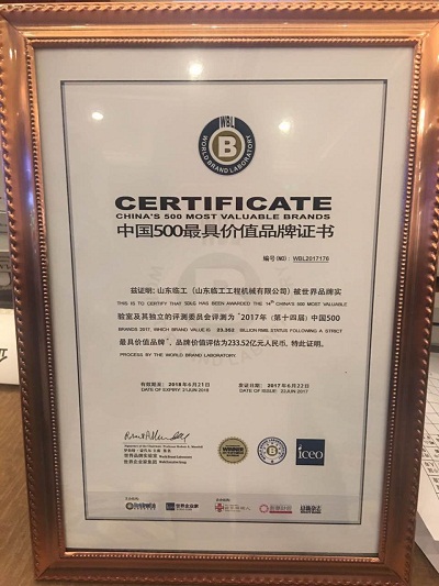 On June 22th, the list of 2017 “China's 500 most valuable brand” in the World Brand Summit was announced. In the annual report based on financial data, brand strength and customer behavior analysis from the World Brand Laboratory, SDLG is on the finalists for the fourth time with brand value reached 23.352 billion RMB, ranking rose to No. 176.