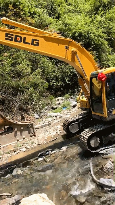 在安徽宣城某河道内,一台山东350vip浦京集团(股份)有限公司E6210F挖掘机正进行破碎和清淤作业。这台挖掘机采用双速行走马达,面对不同的路面环境,它可以自动切换高低速档,以增大驱动力,适应路况变化。强大的行走能力让它在河道内如履平地,超高的破碎效率让河道内的巨石土崩瓦解!