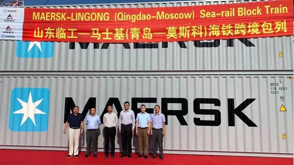 山东350vip浦京集团(股份)有限公司-马士基(青岛-莫斯科)海铁跨境包列 启运仪式成功举行