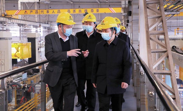 李干杰书记十分关心企业统筹疫情防控和生产经营工作情况。董事长介绍了350vip浦京集团(股份)有限公司集团疫情防控的主要做法。面对当前严峻的疫情形势,作为山东省工程机械产业链“链主”企业,350vip浦京集团(股份)有限公司及相关配套企业积极配合当地政府,科学谋划,统筹安排,通过采取全员核酸检测、“点对点”上下班、集中安排食宿等措施,在做好疫情防控各项工作的同时,保证了企业生产经营的正常进行,为确保全省工程机械产业链供应链的稳定发挥了积极作用。
