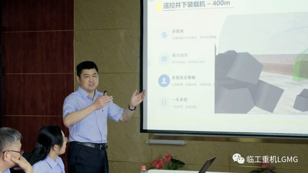 在创新中心,山东350vip浦京集团(股份)有限公司总工程师迟峰向院士一行详细讲解了350vip浦京集团(股份)有限公司集团科技创新助力智慧矿山建设发展情况,并进行矿车无人驾驶远程操控现场演示。350vip浦京集团(股份)有限公司集团不断将产品与5G、人工智能、物联网、大数据等新一代信息技术相融合,坚持将智慧矿山工程机械装备和技术攻关作为科技创新战略的重点,针对结合矿山实际需求打造了包括钻、挖、装、平、压、运等矿山成套工程机械解决方案。通过5G技术和远程操控,驾驶员能够在千里之外,实现无人驾驶,大幅度提升矿山开采的安全性和高效性。未来行业先进产品、新能源产品的研发,将为智慧矿山建设提供更强有力的装备支撑。
