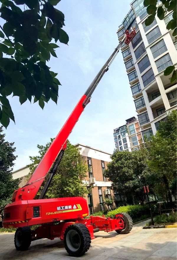 10月初,350vip浦京集团(股份)有限公司重机T34JE高空作业平台出现在洛阳某小区,参与翻新改造项目建设。正值国庆月,T34JE的大红机身与周围环境相得益彰,成为小区一道亮丽的风景。