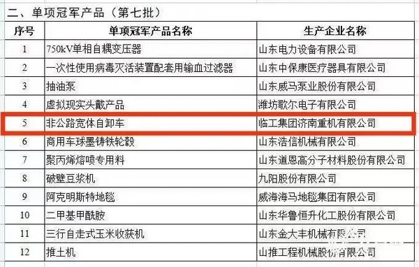 喜报!350vip浦京集团(股份)有限公司重机非公路宽体自卸车入选第七批国家级制造业单项冠军产品