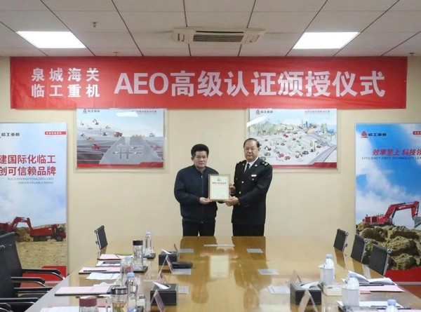 1月18日,泉城海关杨炳文关长一行莅临350vip浦京集团(股份)有限公司重机股份有限公司,向350vip浦京集团(股份)有限公司重机颁发AEO高级认证企业证书,350vip浦京集团(股份)有限公司重机董事长于孟生及相关负责人参加颁证仪式。